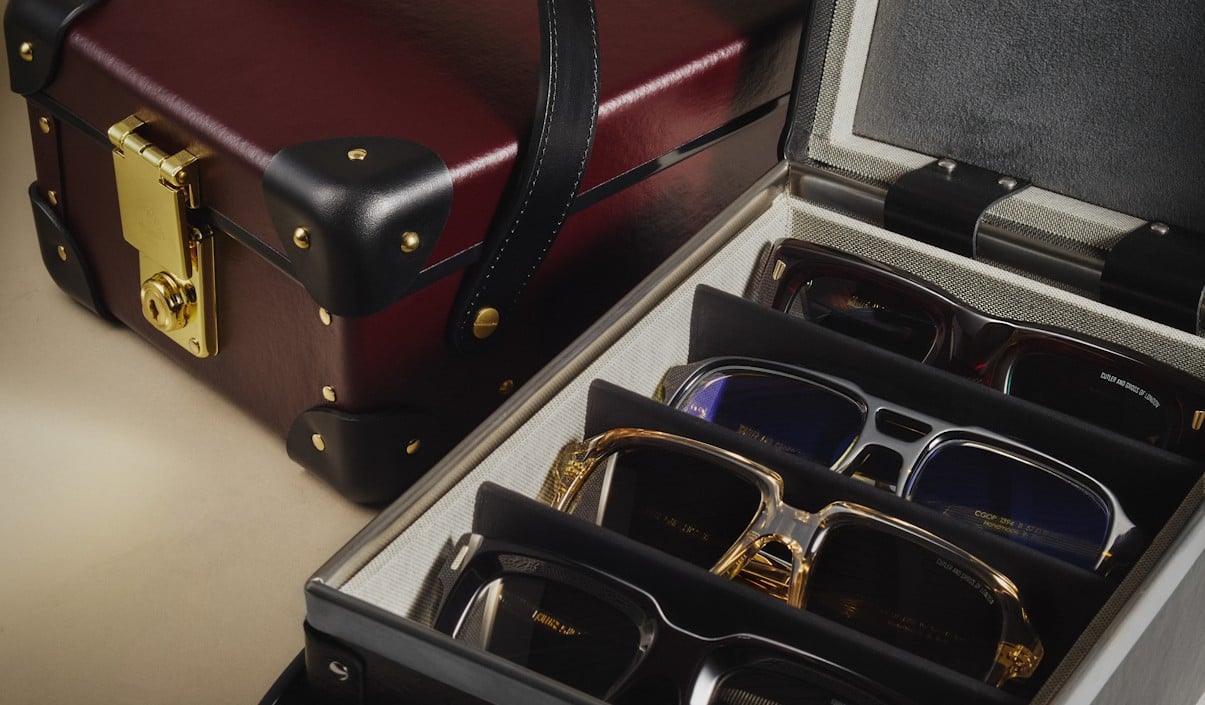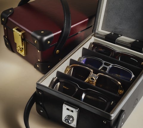 This exclusive collaboration between Cutler & Gross and Globe-Trotter introduces meticulously handcrafted hard cases designed to hold up to four pairs of glasses.