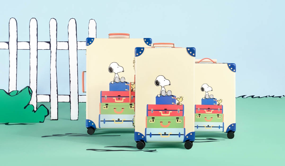 Start your adventure with Snoopy, Woodstock and the Globe-Trotter x PEANUTS luggage collaboration.