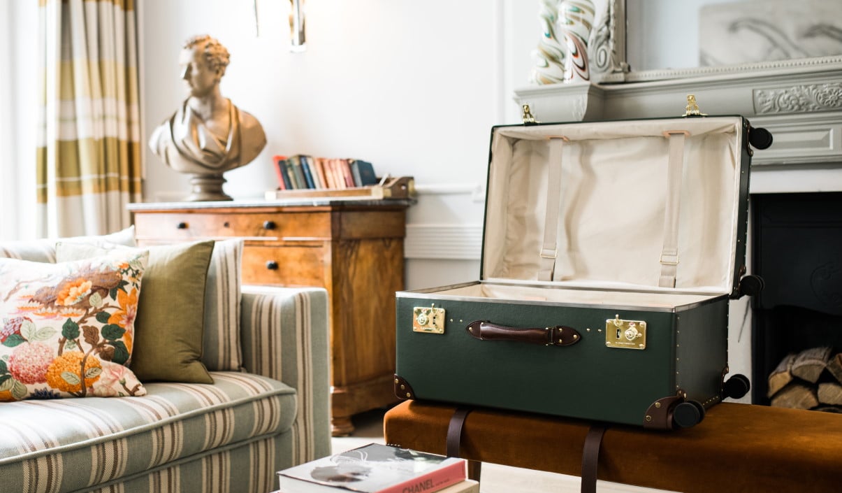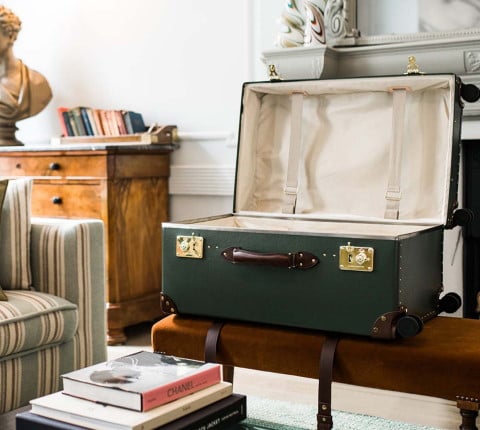Inspired by the original steamer trunk, Globe-Trotter’s large capacity luggage designed for the cabins in steamer ships and trains, is now available the new Globe-Trotter Trunk.